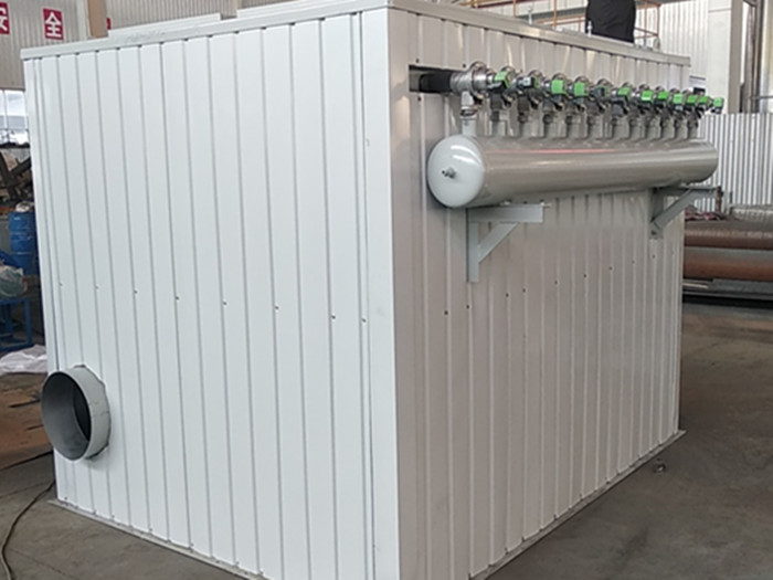 含塵氣流經風道進入中部箱體(塵氣箱),當含塵氣體由塑燒板的外表面通過塑燒板時,粉塵被阻留在塑燒板表面的PTFE涂層上,潔凈氣流透過塑燒板從塑燒板內腔進入凈氣箱,并經排風管道排出。隨著塑燒板表面粉塵的增加,可按差壓、定時控制方式自動清灰,啟閉脈沖閥,將壓縮空氣噴入塑燒板內腔中,反吹掉聚集在塑燒板外表面的粉塵。粉塵在氣流及重力作用下落入料斗之中。